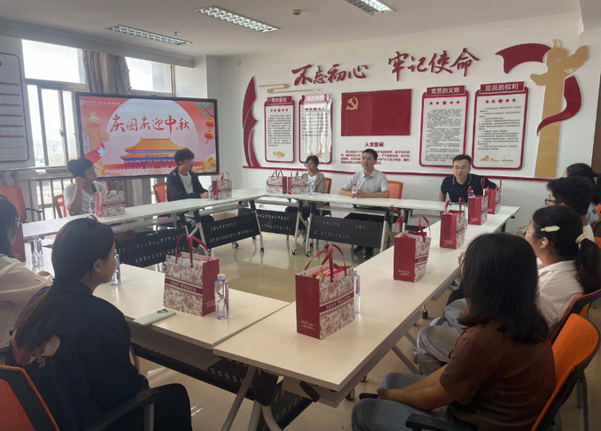 在国庆、中秋双节到来之际,为进一步提升2025级留校新生的归属感,增强学院育人实效。10月5日上午,外国语学院在主楼1302会议室举办“庆国庆 迎中秋”主题座谈会,为假期留校的同学们送上关怀与节日问候。学院党委副书记宋传盛、辅导员、25级假期留校同学参加活动。