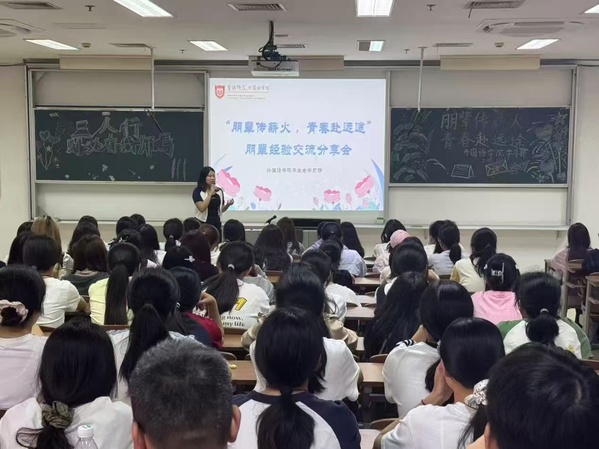 金秋送爽,丹桂飘香。在2025级新生开启大学旅途的关键节点,为帮助他们明确成长发展的方向,进一步厚植学院勤学善思、笃行不怠的优良学风,10月11日下午,外国语学院于主楼B303教室,精心策划并举办了以“朋辈传薪火,青春赴远途”为主题的经验交流分享会,为新生们量身打造了一份干货满满的“大学成长指南”。