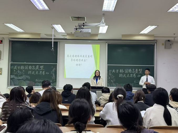 林丽教授的此次讲学,不仅是一场知识的传递,更是一次学术的启迪和视野的开阔。她有效将专业师生的学习实践与前沿语言学理论相结合,为韩语教学与学习注入了新的活力与思考。未来,我系将继续积极邀请更多国内外知名专家学者前来讲学,为广大师生提供更多宝贵的学习与交流平台,不断提升专业学科建设水平以及人才培养质量。(作者:梁海胜 审核:宋传盛)