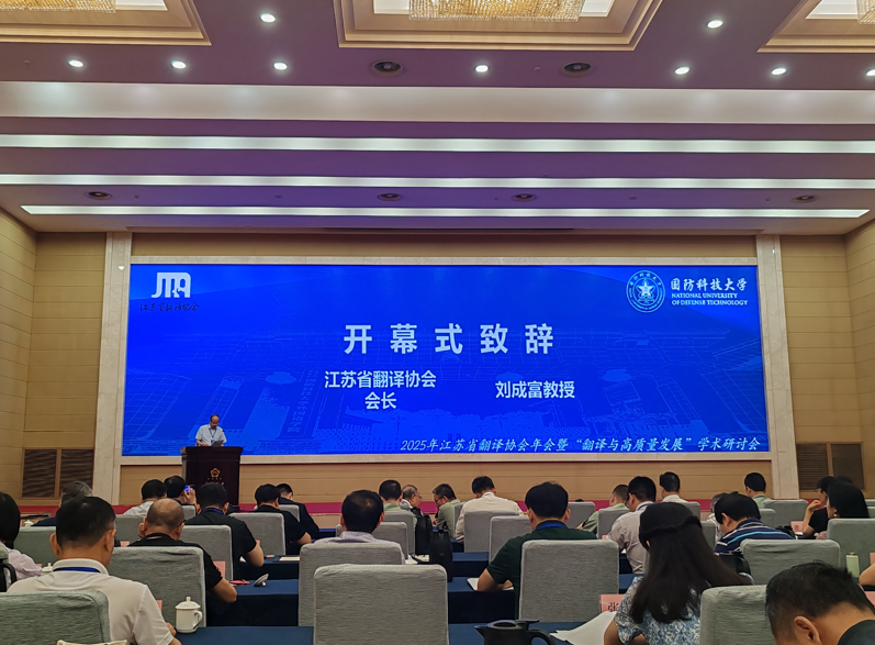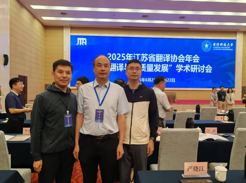 2025年6月20日至22日,江苏省翻译协会年会在国防科技大学外国语学院成功举办,本次会议主题为“翻译与高质量发展”。会议邀请了中国外文局翻译院邢玉堂译审、广西民族大学张旭教授、南京农业大学王银泉教授等知名专家,围绕翻译人才培养、AI与翻译教学等议题展开研讨。学院院长周海明、翻译系主任马宾参会交流。