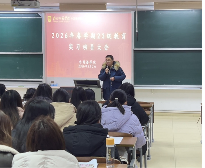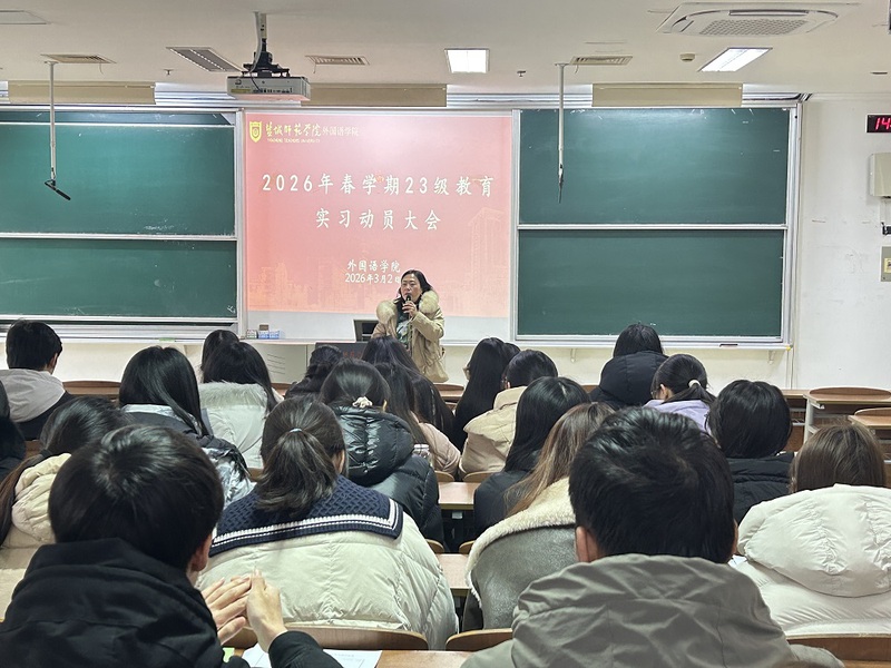 2026年3月2日下午,外国语学院英语教育系召开2023级普通师范生教育实习动员大会。23级英语师范专业全体实习生参会,系主任杨丹、刘岩老师出席会议并作实习专项指导。