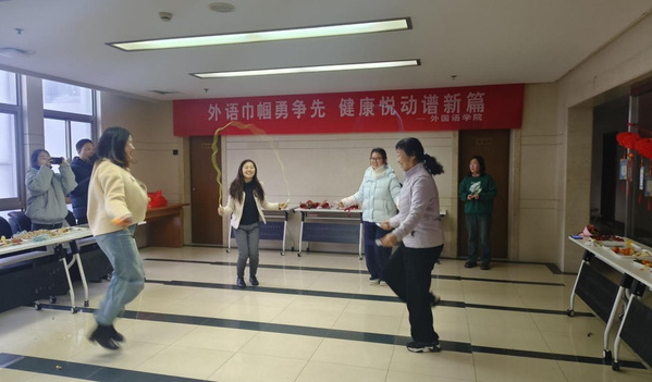 开工启新程,巾帼绽芳华。为庆祝“三八”国际劳动妇女节,彰显新时代女性昂扬向上、奋勇争先的精神风貌,近日,外国语学院分工会在通榆校区主楼举办“外语巾帼勇争先 健康悦动谱新篇”趣味健身活动,学院女教职工积极参与。
