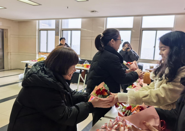 学院党委书记张宾州向全体女教职工致以节日的问候和最诚挚的祝福。她表示,过去一年,学院女教职工们以柔肩担使命、以实干显担当,在教学、科研、管理等各项工作中发光发热,用坚守与付出撑起了学院发展的“半边天”。值此开学复工第一天,她衷心祝愿各位女教职工开工大吉、顺遂安康,希望大家能带着节日的喜悦轻装上阵,在兼顾工作与健康、责任与热爱的同时,让生活和工作都像花束中的糖果一样甜甜蜜蜜、暖意绵长,继续以昂扬向上的姿态,在岗位上续写巾帼华章。书记的话语情真意切,赢得了在场女教职工们的阵阵掌声。