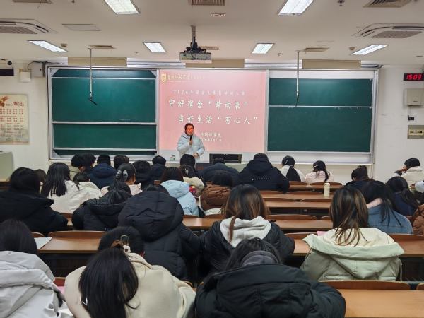 辅导员戴志萍围绕宿舍心理健康作专题培训。她强调,舍长是班级心理健康工作的“第一道防线”,也是“一站式”学生社区温情服务的重要触点。她勉励全体舍长守好宿舍“晴雨表”,当好生活“有心人”,从日常小事入手主动关心同学,认真倾听、守住信任,及时发现情绪波动与矛盾苗头,遇异常情况第一时间寻求老师帮助,带头营造互相尊重、互相包容的社区氛围,让宿舍成为温暖的心灵港湾。